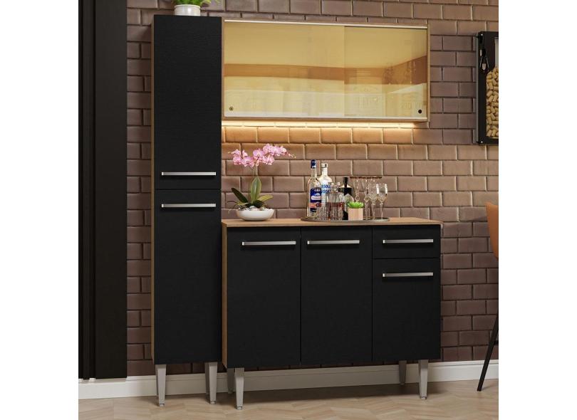 Armário De Cozinha Compacta 137cm Rustic/preto Emilly Madesa 06 Rustic/preto