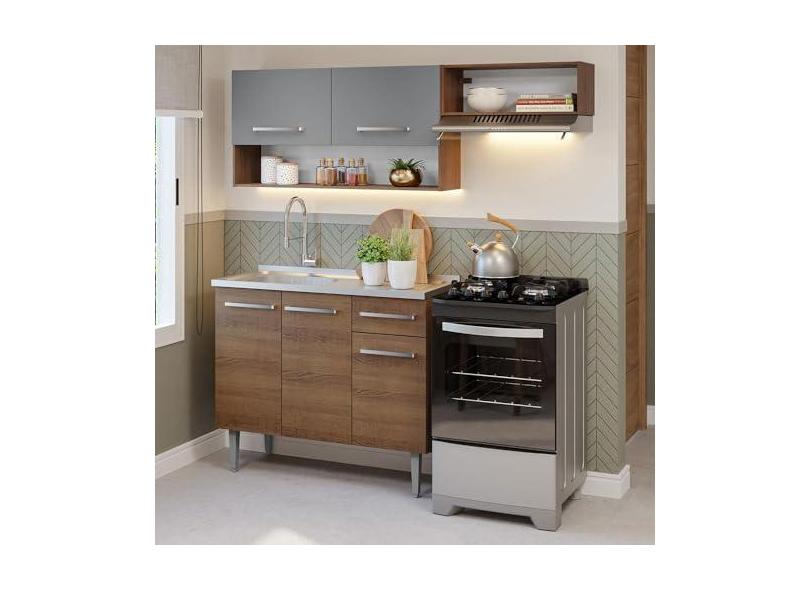 O menor preço encontrado no Brasil para Armário de Cozinha Compacta 165cm com Pia Rustic/cinza Emilly Madesa 09 atualmente é R$ 859,90.