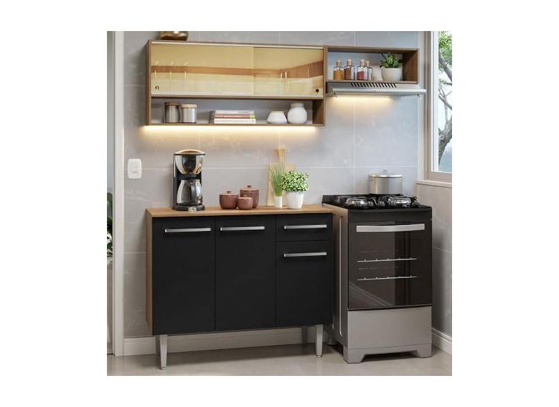 Armário de Cozinha Compacta 165cm Rustic/preto Emilly Madesa 02