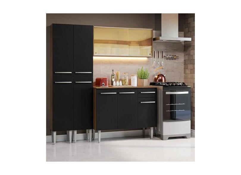 Armário de Cozinha Compacta 169cm Rustic/preto Emilly Madesa 09