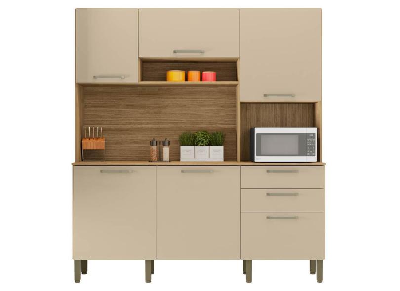 Armário de Cozinha Compacta 180cm Turim K02 Freijó/Vanilla - Mpozenato