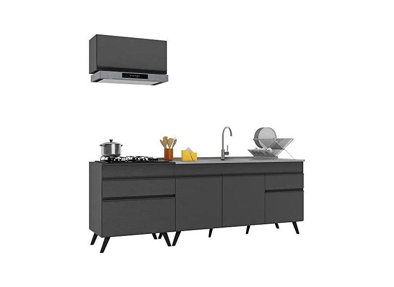Armário de Cozinha Compacta 220cm Veneza Multimóveis V2074 Preto