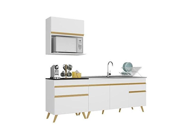 Armário de Cozinha Compacta 220cm Veneza Multimóveis V2075 Branco/dourado