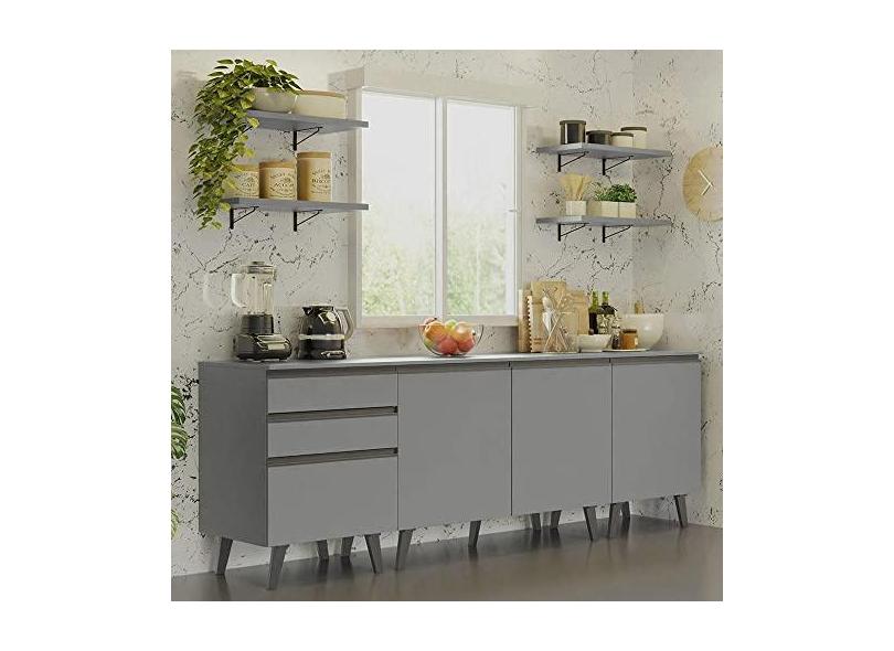 Armário de Cozinha Compacta 240cm Cinza Nice Madesa 01