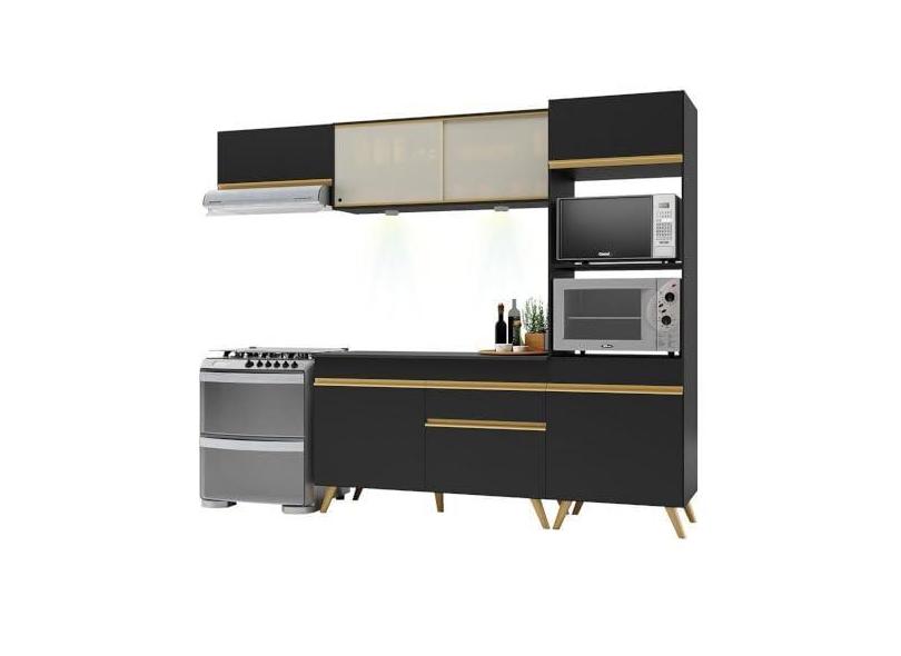 Armário de Cozinha Compacta 252cm com Leds Veneza Up Multimóveis V2016 Preto/dourado
