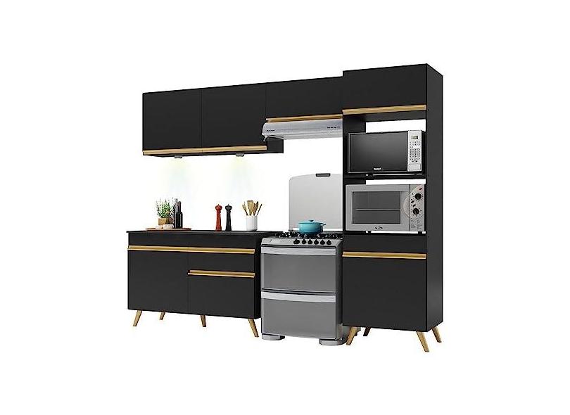 Armário de Cozinha Compacta 252cm com Leds Veneza Up Multimóveis V2018 Preto/dourado