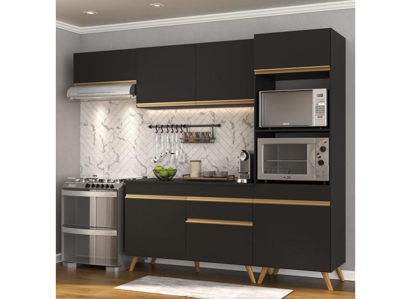 Armário De Cozinha Compacta 252cm Multimóveis Preto/dourado