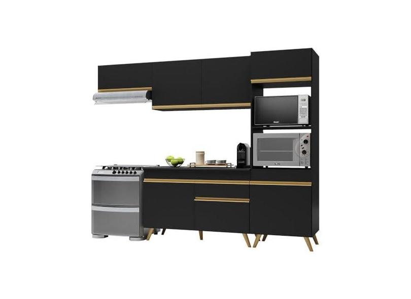 Armário de Cozinha Compacta 252cm Veneza Multimóveis V3690 Preto/dourado