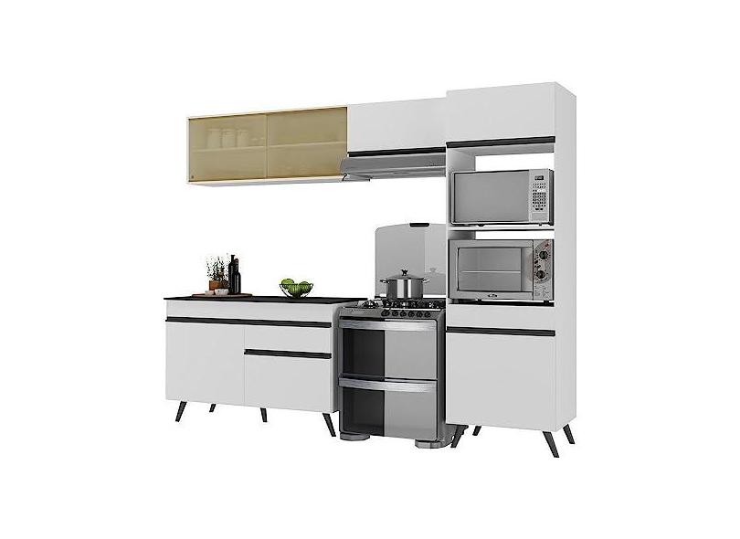 Armário de Cozinha Compacta 252cm Veneza Multimóveis V3692 Branco/preto