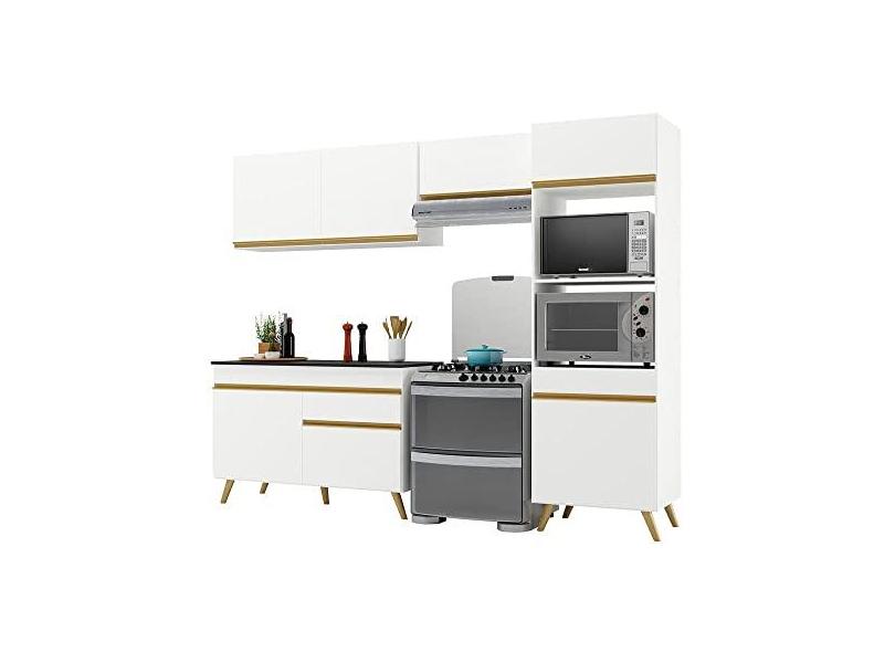 Armário de Cozinha Compacta 252cm Veneza Multimóveis V3693 Branco/dourado