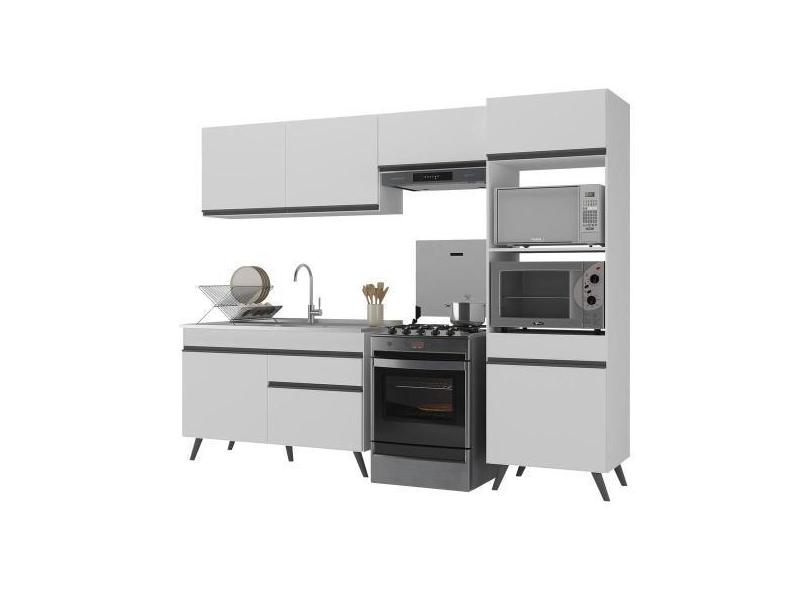 Armário de Cozinha Compacta 252cm Veneza Multimóveis V3693, Branco/Pre
