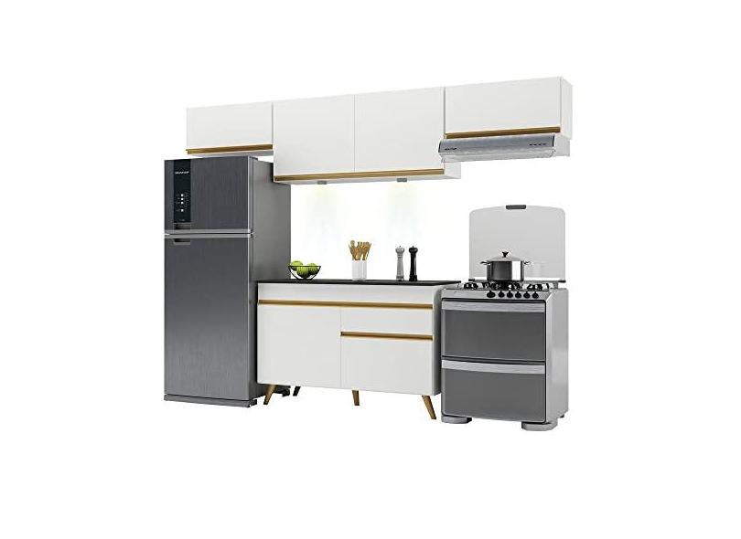Armário de Cozinha Compacta 260cm com Leds Veneza Up Multimóveis V2022 Branco/dourado