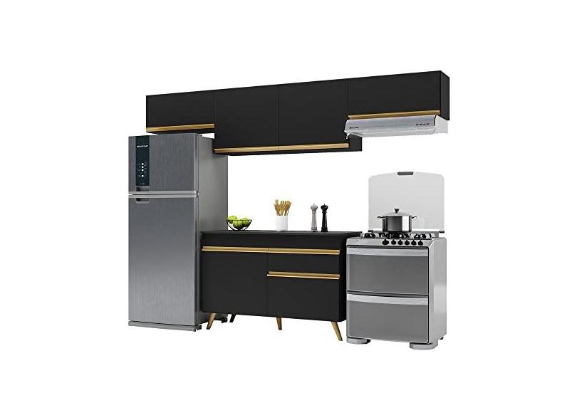 Armário de Cozinha Compacta 260cm Veneza Multimóveis V3697 Preto/dourado