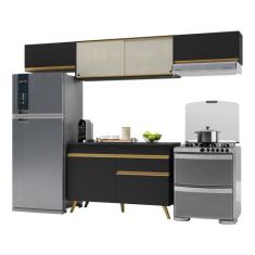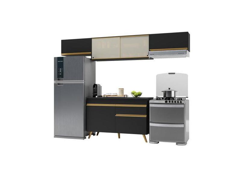 Armário de Cozinha Compacta 260cm Veneza Multimóveis V3698, Preto/Dour