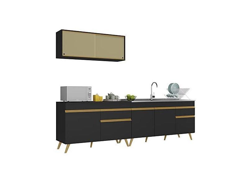 Armário de Cozinha Compacta 270cm Veneza Multimóveis V2077 Preto/dourado