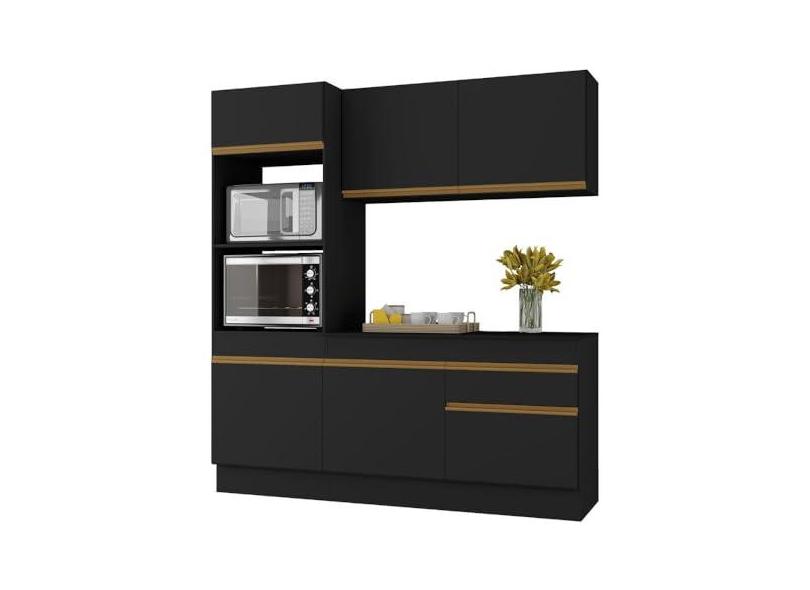 Armário de Cozinha Compacta 3 peças com Rodapé Mp2177 Made Multimóveis Preto/dourado