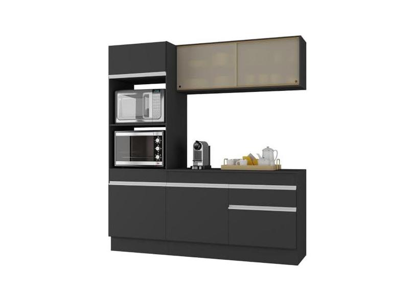 Armário de Cozinha Compacta 3 peças com Rodapé Mp2178 Made Multimóveis Preto/branco