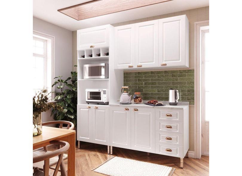 Armário de Cozinha Compacta 3 Peças com Tampo Cristal Luciane Móveis