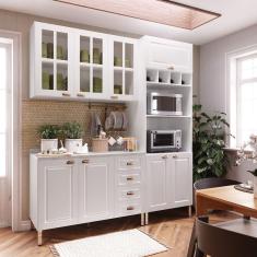 O menor preço encontrado no Brasil para Armário de Cozinha Compacta 3 Peças com Tampo e Vidro Cristal Luciane Móveis atualmente é R$ 4.080,32.