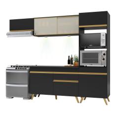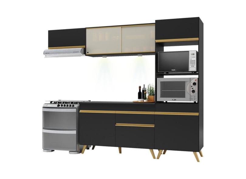 Armário de Cozinha Compacta 4 peças com Leds MP2016 Veneza Up Multimóveis Preta