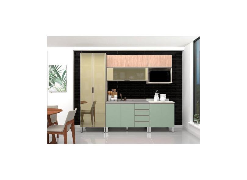 Armário De Cozinha Compacta 6 Peças Sem Tampo Legno Crema Com Verde E