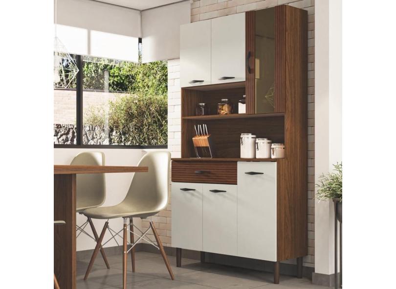 Armário De Cozinha Compacta 6 Portas 1 Gaveta Golden - Nogueira-off White-cp-ripado