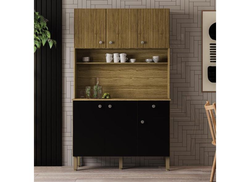 Armário De Cozinha Compacta 6 Portas 1 Gaveta Style - Freijó-nero-cp-ripado Freijó