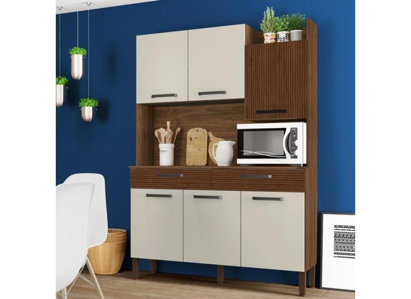 Armário De Cozinha Compacta 6 Portas 2 Gavetas Modena - Nogueira-off White-cp-ripado