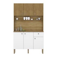 O menor preço encontrado no Brasil para Armário de Cozinha Compacta 6 Portas e 1 Gaveta 111cm Veneza Ripado Freijó/Vanilla - Pallazio atualmente é R$ 601,91.
