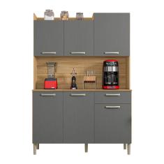 O menor preço encontrado no Brasil para Armário de Cozinha Compacta 6 Portas e 1 Gaveta 121cm Florença Freijó/Grafite - Pallazio atualmente é R$ 643,71.