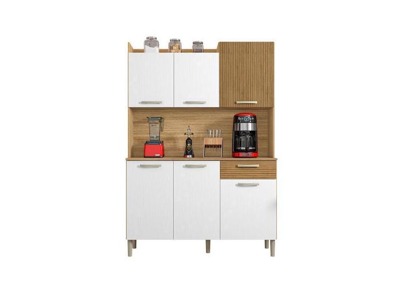 Armário De Cozinha Compacta 6 Portas E 1 Gaveta 121cm Florença Ripado