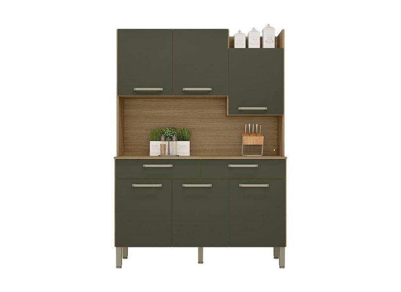 Armário De Cozinha Compacta 6 Portas E 2 Gavetas 132cm Silver Freijó Real - Pallazio