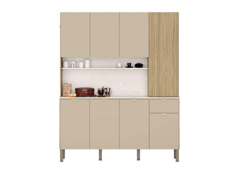 Armário De Cozinha Compacta 8 Portas E 1 Gaveta 161cm Dacar Freijó-vanilla - Pallazio
