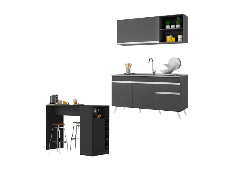 Armário De Cozinha Compacta Com Bancada Americana Veneza Multimóveis Mp2200 Preto/Branco