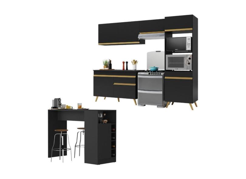 O menor preço encontrado no Brasil para Armário De Cozinha Compacta Com Mesa/bancada Veneza Multimóveis Mp2210 Preto/dourado Preto/dourado atualmente é R$ 1.522,39.