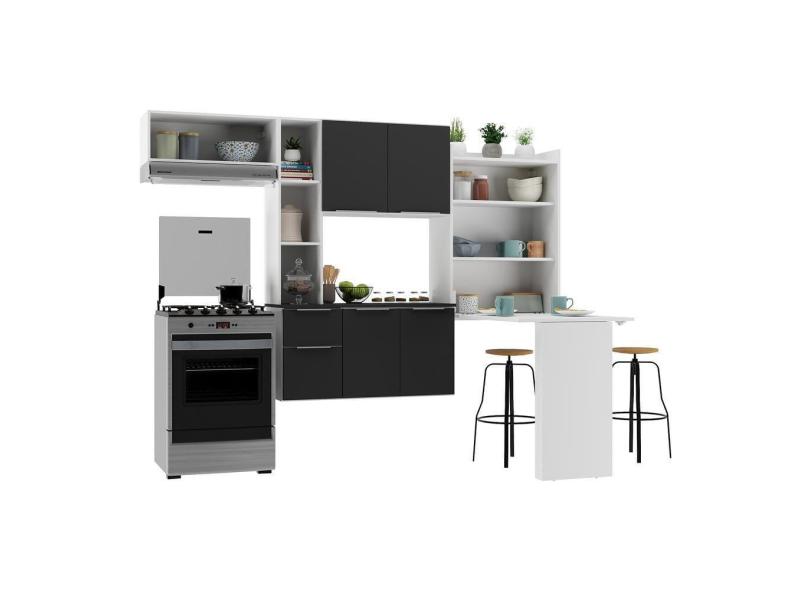 Armário de Cozinha Compacta com Mesa Dobrável MP2009 Sofia Multimóveis Branca/Preta