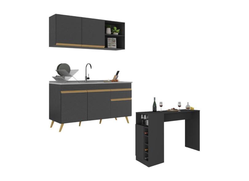 Armário De Cozinha Compacta Com Mesa Gourmet Veneza Multimóveis Mp2201 Preto/dourado Preto/dourado