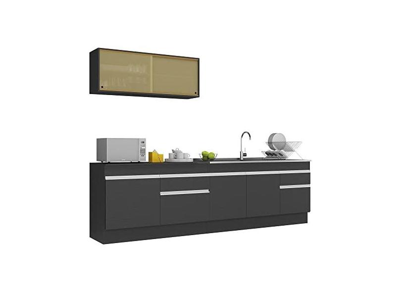Armário de Cozinha Compacta com Rodapé Veneza Multimóveis Mp2112.898 Preto/branco