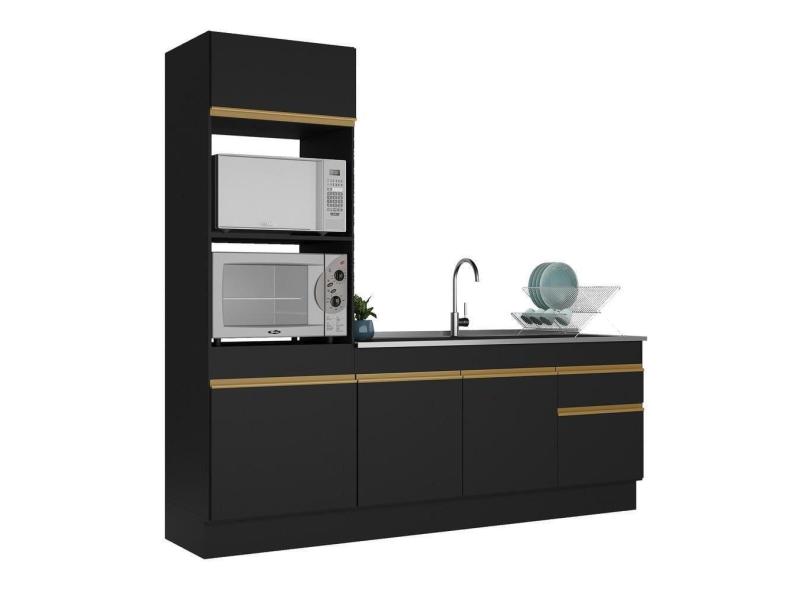 Armário de Cozinha Compacta com Rodapé Veneza Multimóveis MP2113 Preta