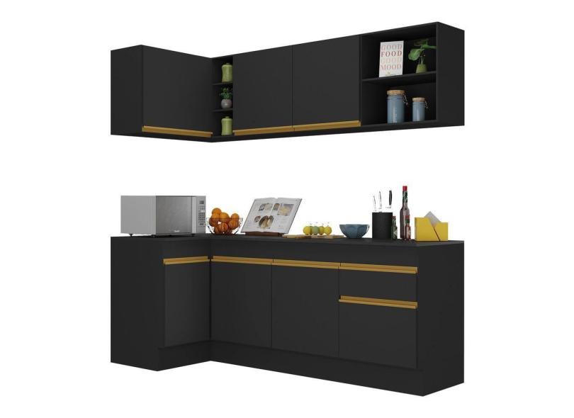 Armário de Cozinha Compacta de Canto com Rodapé Veneza Multimóveis MP2093 Preta