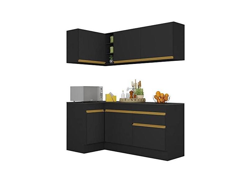 Armário de Cozinha Compacta de Canto com Rodapé Veneza Multimóveis V2092 Preto/dourado
