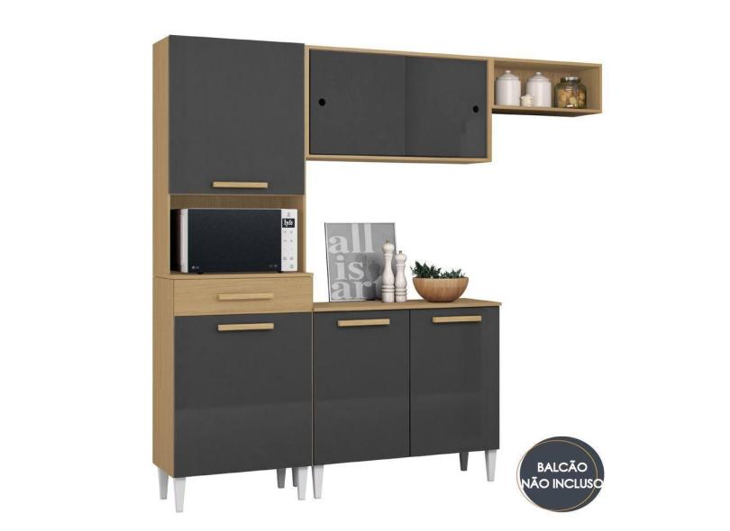 Armário De Cozinha Compacta Isabelle 4 Portas Atacama / Grafite Aramóveis Atac Graf