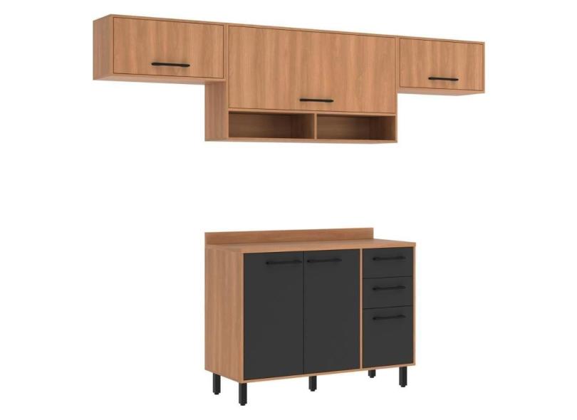 Armário De Cozinha Compacta Modulada 4 Peças Com Balcão Havana Multimóveis Cr20327Rovere/grafite
