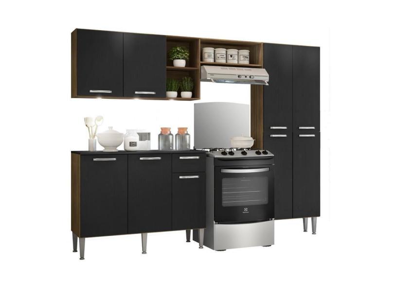 Armário de Cozinha Compacta Multimóveis Pequim FG3413 com 3 Leds e Balcão Madeirada/Preta