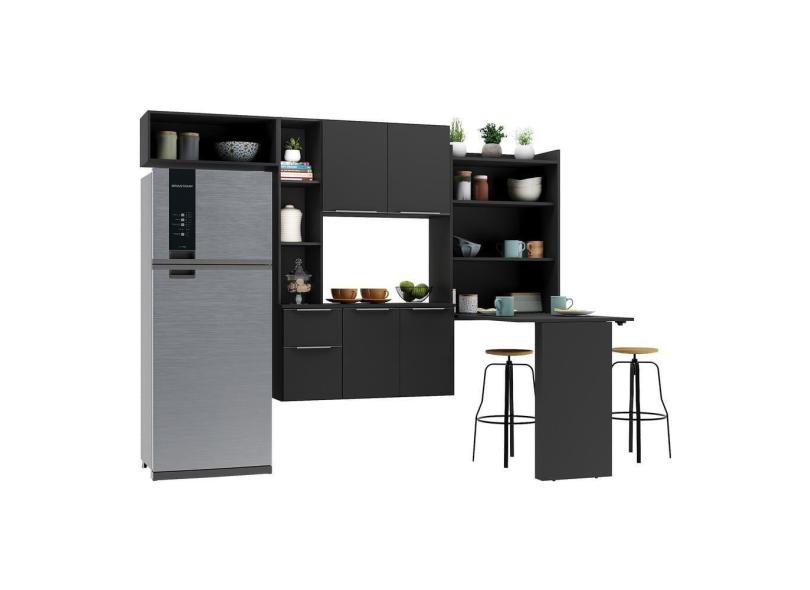 Armário de Cozinha Compacta Multimóveis Sofia FG2010 com Mesa Dobrável Preta