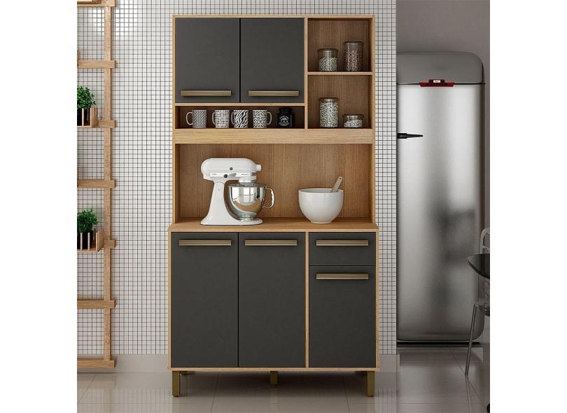 Armário de Cozinha Compacto em Madeira Valdemóveis Ametista 5 Portas 1 Gaveta Cinamomo e Grafite