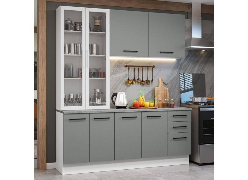 O menor preço encontrado no Brasil para Armário De Cozinha Completa 190cm Com Cristaleira Agata Madesa Branco Cinza atualmente é R$ 2.555,99.