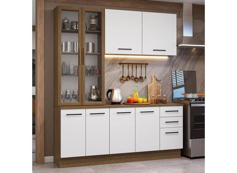Armário De Cozinha Completa 190cm Com Cristaleira Agata Madesa Rustic Branco