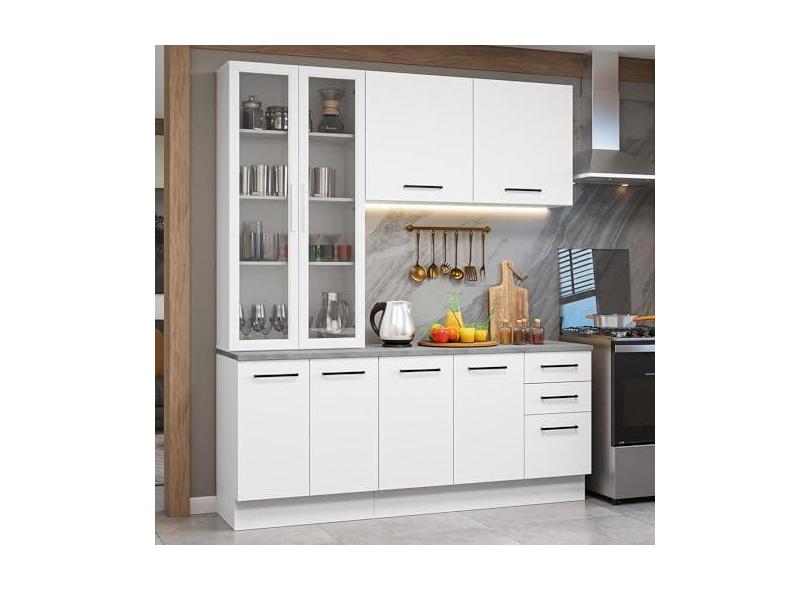 O menor preço encontrado no Brasil para Armário de Cozinha Completa 190cm com Cristaleira Branco Agata Madesa 01 atualmente é R$ 2.267,99.