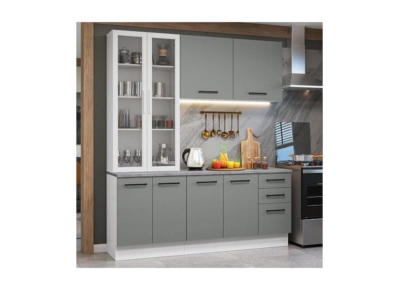 Armário de Cozinha Completa 190cm com Cristaleira Branco/cinza Agata Madesa 01
